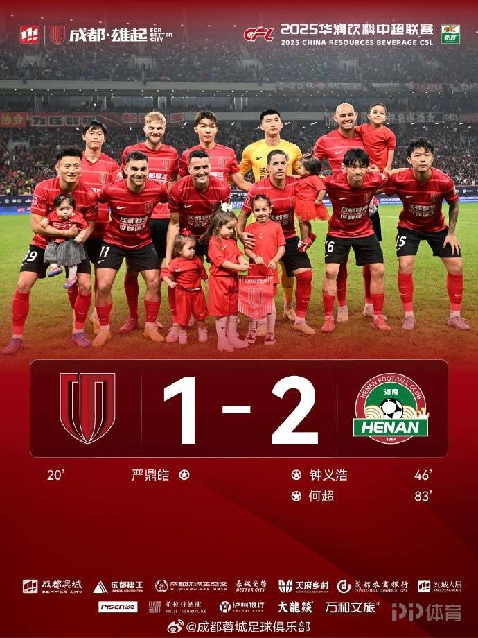 主場遭河南逆轉(zhuǎn),成都蓉城提前一輪無緣本賽季中超冠軍