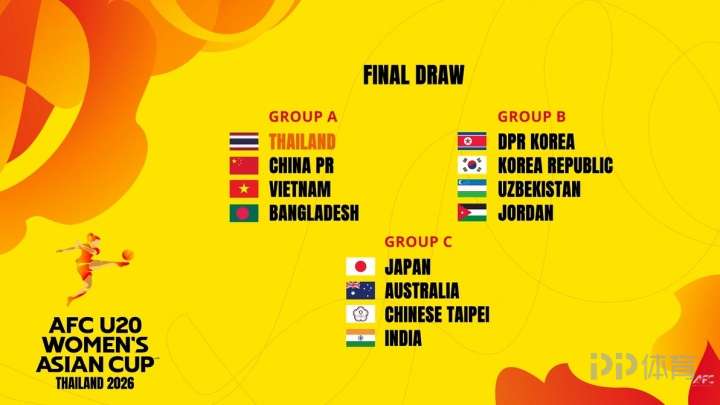 2026年泰國(guó)U20女足亞洲杯抽簽儀式進(jìn)行,中國(guó)U20女足與泰國(guó)、越南、孟加拉國(guó)同組。